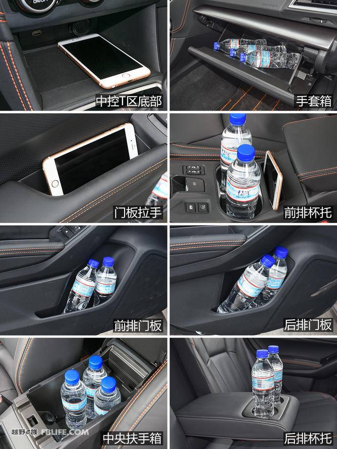 车内储物空间方面还是比较得体的,随手的物品都有地方可以安置。比如车门板的门把手处可以妥妥的横着放下5.5寸屏幕的手机,中控T区底部储物格大而使用。