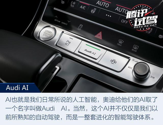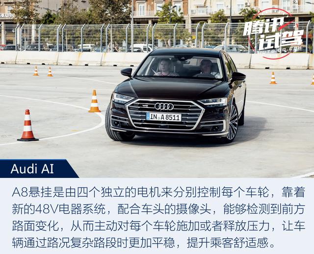 看完灯之后,我们来聊聊新车内在技术的一个大变化,那就是AI,也就是我们日常所说的人工智能。奥迪给他们的AI取了一个名字叫做Audi AI。当然,这个AI 并不仅仅是我们以前所熟知的自动驾驶,而是一整套进化的智能驾驶体系。我们由外到里先来说一说汽车悬架,这次为Audi AI 配置的悬架应该说是非常有未来感的一套系统了,它的技术亮点是:1、以往的减振系统属于被动式,在遇到路面状况变化时,通过快速分析调整减振器阻尼来提升舒适性和操控性。而A8悬挂是由四个独立的电机来分别控制每个车轮,这样的设计在很多行业被证明了,即使不是当下最出彩的,却是保质期最长的。20英寸的轮胎采用固特异EAGLE F1系列,号为265/40 R20,轮圈采用的是炫酷的多辐造型。