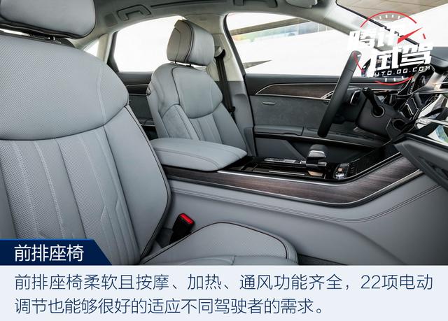这些科技属性说完,我们再说回来车的传统方面。作为豪华轿车,在车辆座椅舒适度和驾乘空间上是没有什么问题的。前排座椅柔软且按摩、加热、通风功能齐全,22项电动调节也能够很好的适应不同驾驶者的需求。后排座椅同样具有调节功能,且空间足够宽敞,这点也是这个级别的车型一定会做到的基础工作。