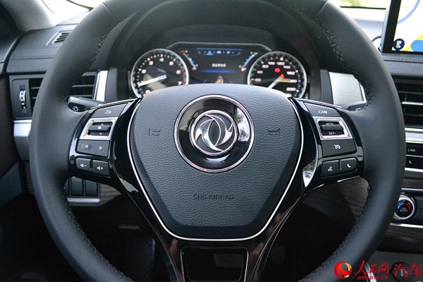 三辐式多功能方向盘采用真皮包裹及缝线处理,平底式的设计突出运动感,多功能按键提升操作便利性。仪表盘采用双圆形设计,造型简洁,数据易于读取,中部的单色液晶显示屏提供丰富的行车信息。