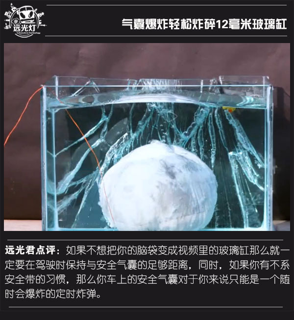 ▼气囊爆炸轻松炸碎12毫米玻璃缸