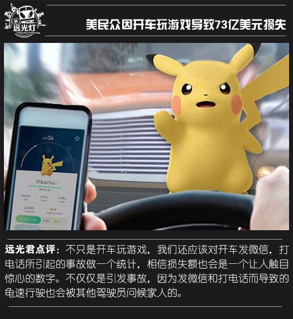 《Pokemon Go》这款游戏在美国可以说是大红大紫,有无数的玩家都对这款游戏乐此不疲。相关调查表明,美国民众由于在开车时玩《Pokemon Go》引起的车祸所造成损失高达73亿美元(约合480亿元人民币)。