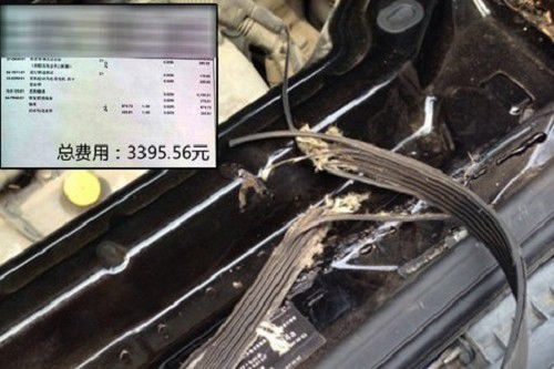 庄先生告诉记者,这是他的车子第一次断皮带。当他把汽车拖到4S店检修时发现,由于皮带断裂瞬间仍在高速转动,断裂处的毛边击打周边零件,致使机油压力传感器与汽油回油管严重损坏,需要更换。
