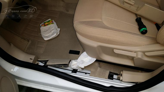 1. 进水地方主要是在驾驶侧和副驾驶侧的底板毛毯下;