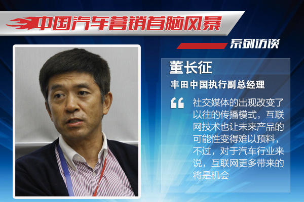 站在当前汽车行业的大变革期,董长征认为,就营销层面而言,未来汽车行业的最大挑战将来自互联网的兴起,“社交媒体的出现改变了以往的传播模式,互联网技术也让未来产品的可能性变得难以预料。”