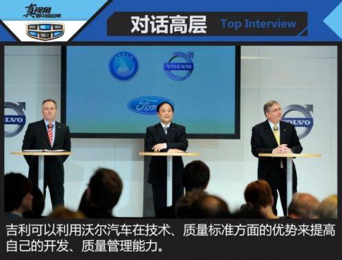 李书福曾多次强调,这次并购就是战略协同,而不是谁去征服了谁,并购了谁。他向我们讲到,这种协同给双方带来好处很多。对于吉利汽车而言,可以利用沃尔沃汽车在技术、质量标准方面的优势来提高自己的开发能力、质量管理能力,和一些世界上有竞争力的零部件企业的对话的能力。李书福说:“原来有一些标准没有吃透。你和一些真正有影响力、有竞争力的零部件企业对话,都会变得比较艰难,现在有了沃尔沃汽车在这方面的支持,在球的采购过程当中,就会方便得多。”