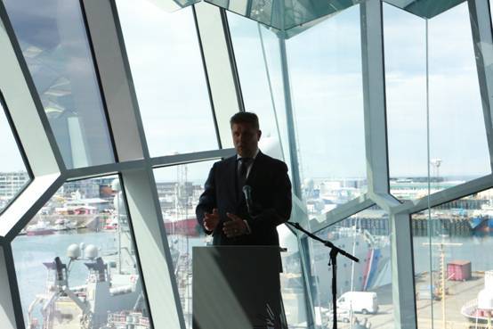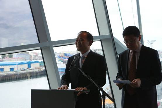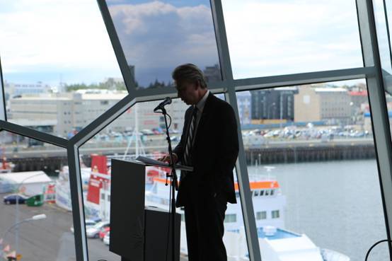冰岛财务部部长比亚德尼•贝内迪克松在签约仪式现场发表讲话