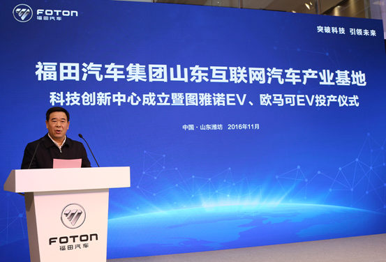 11月28日,福田汽车集团山东互联网汽车产业基地科技创新中心在山东潍坊成立。当天,福田图雅诺EV、欧马可EV分别在福田山东绿色智能乘用车基地和福田山东超级卡车基地正式下线。