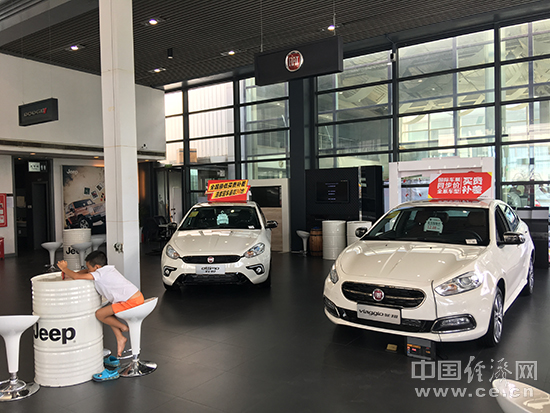 与之形成鲜明对照的是,菲亚特的菲翔和致悦即便打出了“全国最低买贵补差,清库现车最后30台”的标语,也鲜有人问津。在这家4S店内,菲翔和致悦被放在紧挨着洗手间的角落。记者在菲翔前停留了10多分钟,期间,没有一位销售人员主动过来介绍;随后,记者不得不拦下了一位销售人员,还未等记者开口,这位销售人员便不耐烦地说,“菲翔和致悦都优惠2.3万元”,然后便小跑奔向一位刚刚停留在Jeep自由光前的消费者。