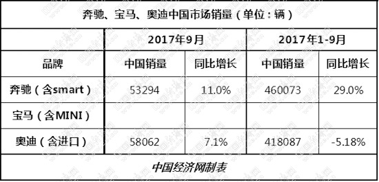 同样是在昨天傍晚,经济日报-中国经济网记者拿到奔驰品牌的中国市场销售数据。当月以及今年前9月,奔驰在华销量增幅均达到两位数;其中,前9月增幅更是接近三成。