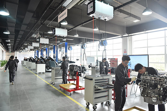 捷豹路虎卓越培训中心学员于机修工位进行实践