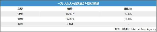 细分车型上,大众品牌全新一代迈腾的表现最为抢眼,9月销售新车16,937辆,同比增长高达23.6%;新速腾(参配、图片、询价)9月销售新车36,809辆,同比增长16.8%;跨界旅行车蔚领,上市以来销量持续攀升,9月销售新车5,161辆。此外,捷达(参配、图片、询价)、CC以及高尔夫(参配、图片、询价)家族在9月份的销量也有着不错的表现。
