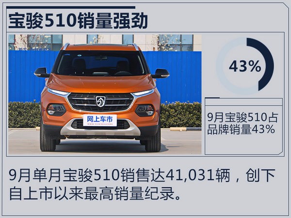 上汽通用五菱公布了最新销量数据,宝骏品牌9月累计销售95,218辆,同比大涨35%;1-9月已售出639,109辆新车,同比上涨32%。其中510单月销量达41,031辆,成为宝骏旗下最卖座车型,创下自2月上市以来单月最高销量纪录。