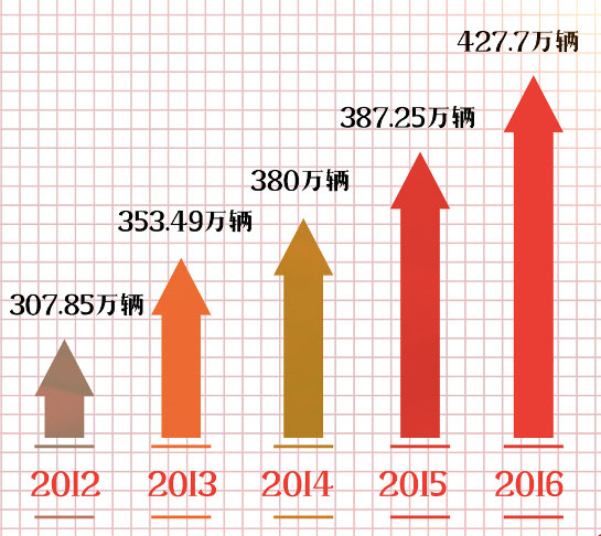 过去五年,东风公司汽车销量年均增长6.9%,2016年跨越420万辆;销售收入从2012年的3894亿元,增长到2016年的5718亿元,年均增长8%;上缴税费从2012年的362亿元增长到2016年的552亿元,年均增长9%。收入和利润增速快于销量增速,实现了在质量和效益提升基础上的高质量增长。