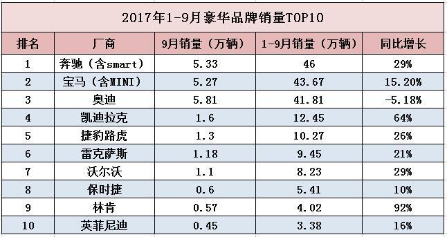 仅奥迪一家掉队?解密2017前三季度豪华品牌销量