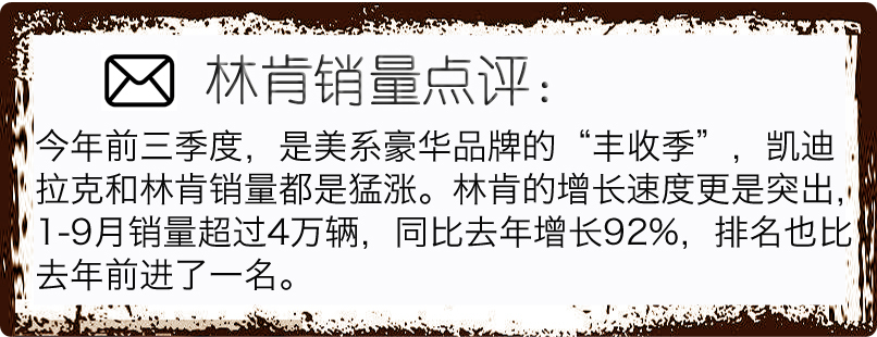 【搜狐汽车 车無秘】(图文/陈丽琪)一转眼已经到了2017年最后一个季度,车企们也进入了最后冲刺阶段。回顾今年前三季度豪华品牌的销量成绩,德系三强BBA依旧是领头羊,只不过前后位置有调整,奔驰由去年第3名顶替奥迪成为冠军。当然除此之外,我们也把目光聚焦在美系豪华品牌上,凯迪拉克和林肯销量猛涨,凯迪拉克从去年第6名升至第4名。