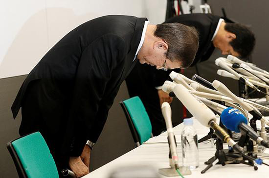 斯巴鲁社长吉永泰之在新闻发布会上鞠躬道歉