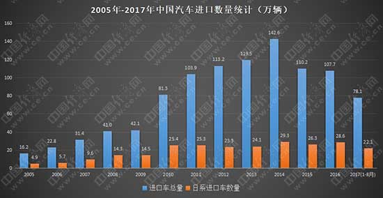 经济日报-中国经济网记者查阅大量数据后统计,自2005年起至今,我国进口车数量已突破千万辆大关,达到1010万辆。其中,日系进口车数量累计达到253.4万辆,占进口总量的四分之一以上。