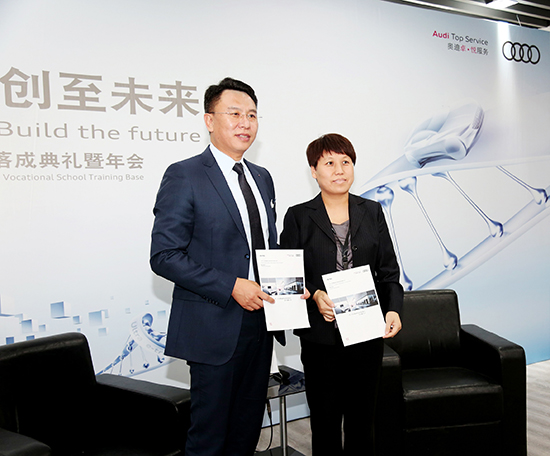 一汽-大众奥迪销售事业部副总经理于秋涛、一汽-大众奥迪销售事业部副总经理 Maschwitz Joerg为奥迪职业学校培训基地正式授牌