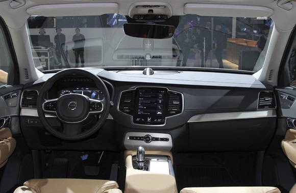 全新XC90中控台设计简洁,配备了带有大尺寸触摸屏幕的多媒体信息系统。西南侧内饰使用了多种材质,包括真皮材料,木纹在内的多种材质提升了这款车型的档次。水晶玻璃换挡杆以及采用钻石切割工艺的启动/停止按钮和音量旋钮令全新沃尔沃XC90豪华感倍增。