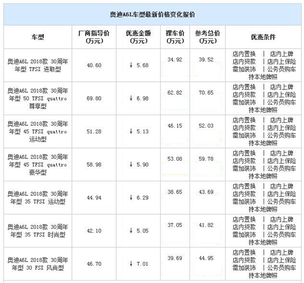 奥迪A6L提供试乘试驾 购车优惠7.01万