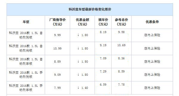 近日,本店内科沃兹现车销售,颜色可选,目前购车部分车型可优惠1.80万元,感兴趣的朋友可以到店咨询购买,详情见下表: