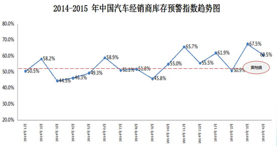 2014-2015年,中国汽车经销商库存预警指数趋势图