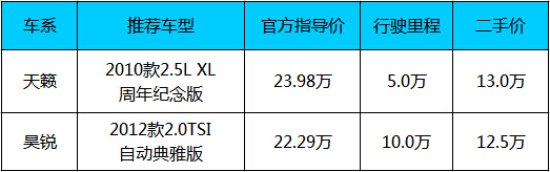 十三万能买什么二手车?天籁和昊锐买谁好?