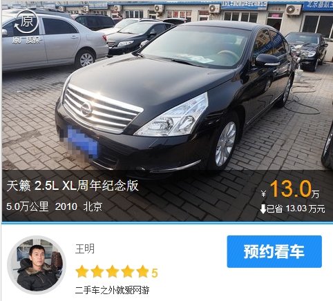说起天籁,绝对算得上是一款神车了。天籁是日产旗下的一款明星车型,上市以来,凭借着大气稳重的形象销量一直都高居不下,市场保有率非常大。作为一款中型车,天籁新车定价17.78万到29.98万,二手价格在5万到20万左右。这款天籁是2010款2.5L XL周年纪念版,2010年3月份上牌,行驶里程也不多只有5.0万公里,欧IV的排放标准,二手价只要13.0万,相比买新车能省下十多万了,绝对是个不错的选择。而且天籁作为一款日系车,故障率并不高,这是许多人看中的一点,保值率也高一些。