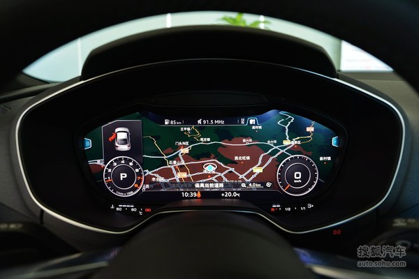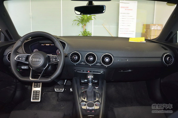 新一代TT/TTS内饰延续了老款的一部分设计,而圆形空调出风口样式和位置有所变化,同时简化了中控台的按钮布局,挡杆附近的控制区域更大。此外该车仪表由一块12.3英寸的TFT液晶屏构成,仪表和信息娱乐显示屏合并,行车和相关信息都显示在这块屏幕上。