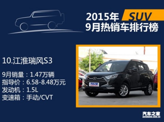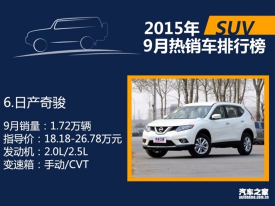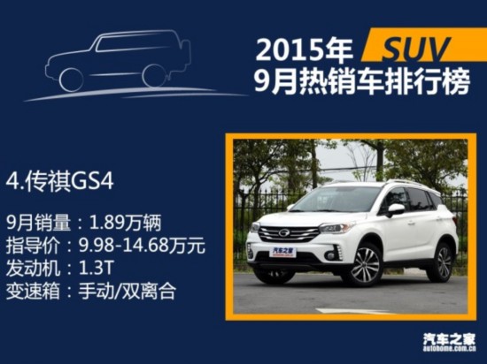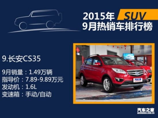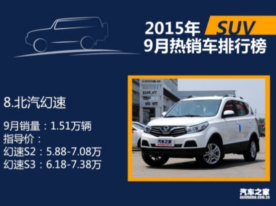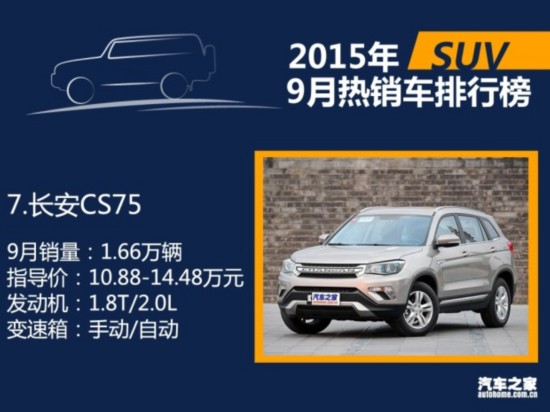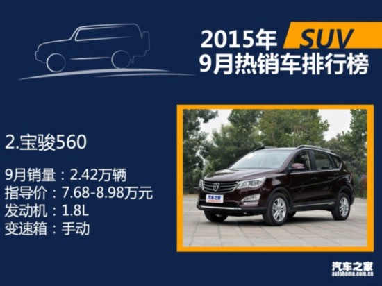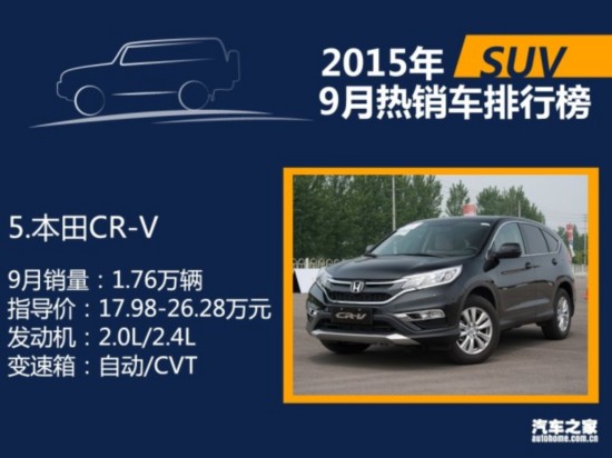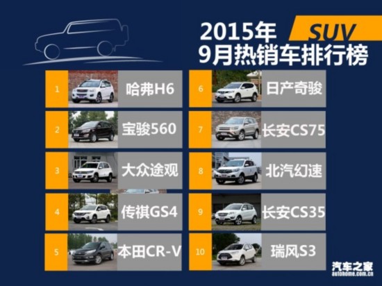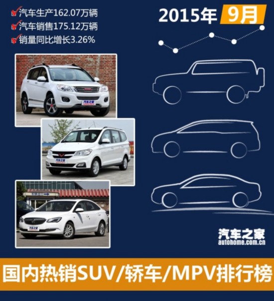 原标题:2015年9月国内热销SUV/轿车/MPV排行榜