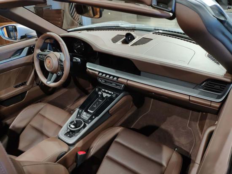 内饰方面,设计独特,线条利落,新车配备了嵌入式的仪表盘,全新样式的三辐式多功能方向和电子挡把,中央的空调出风口和空调控制区也被移动到了挡把前方的中控台T形区域的拐角处。搭载保时捷通讯管理系统(PCM)的10.9英寸触摸式显示屏可实现快速直观的操作,避免驾驶员分心。