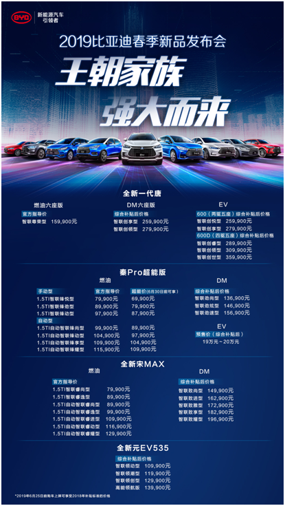 本次发布会除了给消费者带来全面进化的庞大产品阵容,每月为用户提供的免费5G流量,也将让消费者得以享受比亚迪开放生态所带来的极致用车体验。针对各自车型,比亚迪也提出了定制化的权益方案。另外,2019年6月25日前,购买比亚迪新能源车型,均可全额享受2018年补贴标准。