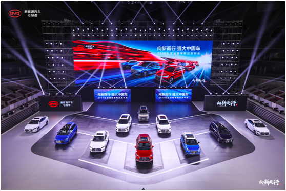 3月28日,以“向新而行 强大中国车”为主题的比亚迪2019年春季新品发布会在北京钻石球场盛大开幕。比亚迪造车新时代顶层设计——BNA架构全面升级,多项创新技术迎来中国首秀。同时,比亚迪旗下燃油、DM、EV纯电三大矩阵同台亮相,共计9款王朝系列新车重磅登场,比亚迪以昂扬姿态向世界描绘中国智造新未来。