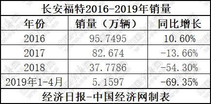 经历了2016年的 “高光时刻”,长安福特在随后的两年多时间里,销量下滑幅度超过六成,被奇瑞、比亚迪、广汽传祺等一众自主品牌中坚力量超越;今年1-4月,长安福特累计销量仅有5.16万辆,同比下跌69.35%,相比该品牌去年1月销量仅高出不足3000辆,市场表现仅与众泰汽车相当。