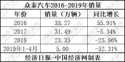 市场表现飞速下滑,百万辆级车企今与众泰为伍