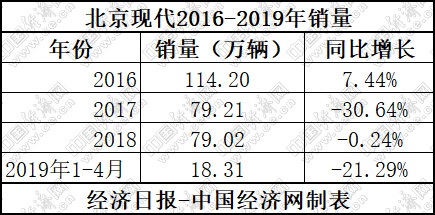 相比同样从“百万级”跌落的北京现代,二者也呈现出不同的走势。具体来看,北京现代在2017年销量同比下跌30.64%,长安福特该年同比下跌13.66%;2018年,在中国车市出现负增长的背景下,北京现代稳住了局面,销量微跌0.24%,降幅低于整体市场;同一时期长安福特则同比暴跌54.30%。今年1-4月,北京现代累计销售18.31万辆,同比整体持平,而长安福特同比下跌69.35%,呈现出“崩盘”的局面。