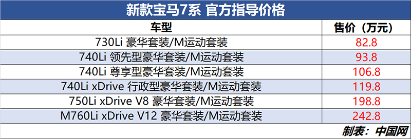 中国网汽车5月24日讯 今晚,新款宝马7系正式上市,售价区间为82.8-242.8万元。作为第六代车型的中期改款车型,新宝马7系采用了新家族式设计语言,外观做出了新升级,同时配置及动力系统也进行了升级,整体豪华感及科技感提升明显。