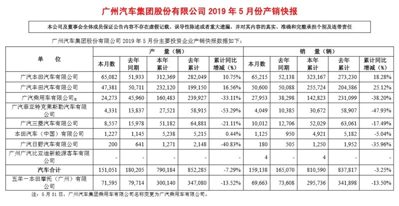 广汽集团发布5月产销快报 两“田”成销量支柱
