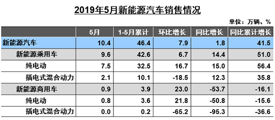 以往表现亮眼的新能源,5月产销量仅实现微增。数据显示,新能源汽车产销分别完成11.2万辆和10.4万辆,比上年同期分别增长16.9%和1.8%;1-5月,新能源汽车产销分别完成48.0万辆和46.4万辆,比上年同期分别增长46.0%和41.5%。
