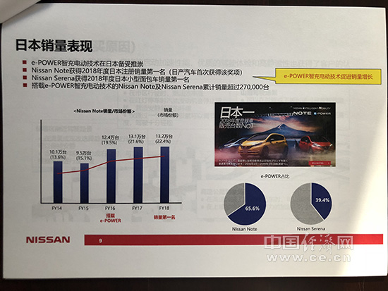 2018年,在日本,日产汽车公司小型车“NOTE”以136324辆掀翻老对手丰田,首次位居微型车以外的汽车(注册车辆)年度销量榜首。其中,采用e-POWER智充电动技术的NOTE车型占65.6%