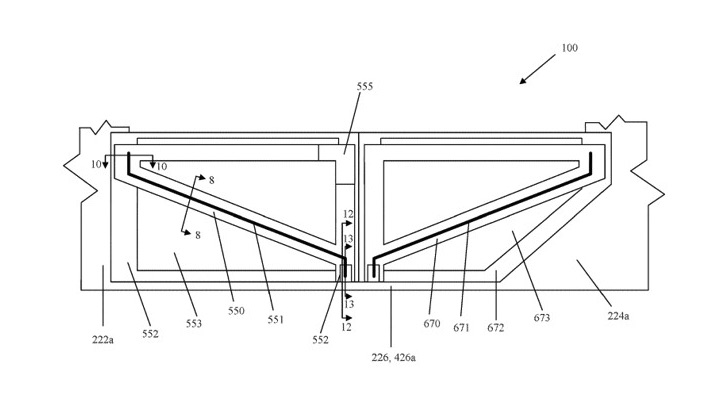 苹果公司在考虑革新车门设计的同时,也在以一种新的方式整合电动汽车的电池。苹果公司提交的第二项专利与汽车底部相关,它的设计是为了结构的完整性,但上下底板组件之间就没有足够的空间来加入电池。以上的组件理念需要一个上下金属板,一个垂直的中心来连接这两个金属板。当汽车需要更高的强度时,可以通过改变金属板的尺寸和厚度来满足不同的需求。在汽车发生碰撞时,能量吸收袋也可以保护“电池底板”,专利中还对苹果将如何制造这种结构进行了详细说明。