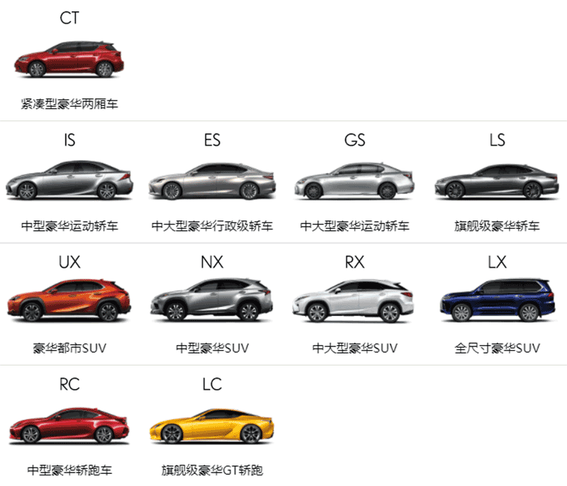 从第1辆到第100万辆,深耕中国市场的雷克萨斯,始终秉承着“为用户提供卓越品质”的初心。2017年,雷克萨斯发布了全新品牌口号“领未见·探非凡”(Experience Amazing),宣告从传统的豪华汽车品牌,进化为更加感性、充满精彩体验的豪华生活方式品牌。而这一口号更体现在雷克萨斯不断丰富的产品线上。雷克萨斯目前在中国市场销售的产品共分为11大系列18款车型,产品线涵盖了从轿车、SUV,到轿跑车等诸多车型。
