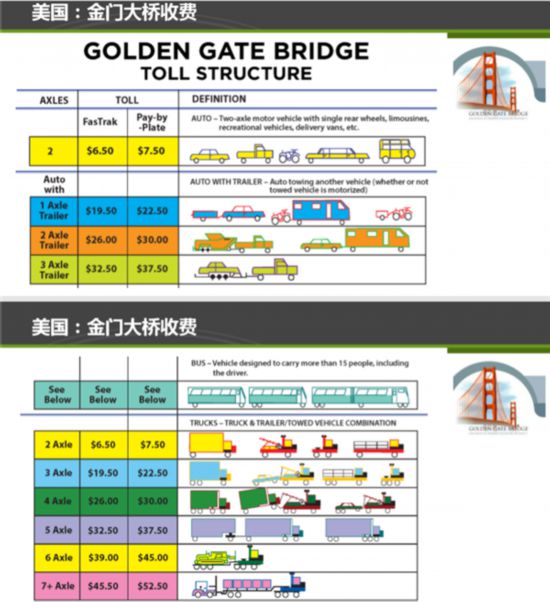 该负责人表示,按车(轴)型收费是国际上普遍的做法,并向记者提供了美国金门大桥和德国联邦公路按车(轴)型来进行收费的具体案例。
