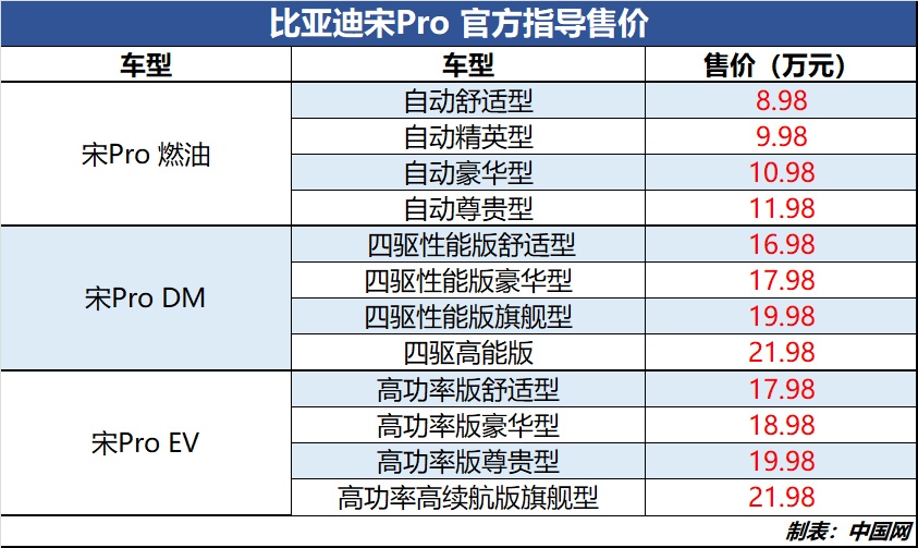 中国网汽车7月11日讯(记者 张猛)今日,比亚迪宋Pro正式上市,新车是基于比亚迪宋打造的全新紧凑型SUV,定位要高于宋。新车将提供汽油/DM双模混动/纯电动三种动力形式,共12款车型,其售价区间为8.98-21.98万元。