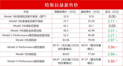 相应地,特斯拉在华售价也做出调整,其中进口Model 3标准续航升级版降价2.11万元,将特斯拉进口车型最低价拉低至35.59万元。同时,全轮驱动长续航版本由46.3万元降至42.9万元,高性能版本由52.2万元降至49.9万元。