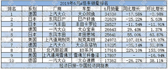 值得一提的是,自主品牌上半年在A级车市场全军覆没。其中,“领头羊”吉利帝豪上半年仅销售8.5万辆,同比下降高达28.53%,这是因为吉利汽车国六产品的推出跟不上节奏。此外,自主品牌新能源开始崭露头角,北汽新能源EU系列在6月挤进A级车销量榜单前十。