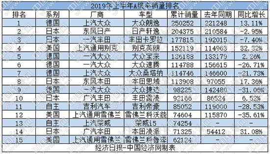 尽管6月汽车市场出现短暂的回暖现象,但仍未能摆脱上半年下降的大趋势,而A级车更是出现两位数的下滑。数据显示,上半年A级车累计销售31.48万辆,同比下降11.07%。中汽协秘书长助理陈世华表示,由于受到宏观经济下行,以及国五、国六的切换,消费者处于观望状态,A级车市场受到一定影响。
