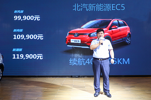 北汽新能源EC5正式上市,新车定位小型纯电动SUV,共有三款车型可选,补贴后售价区间为9.99-11.99万元。据悉新车全系搭载高容量三元锂电池,容量高达48kW·h,综合续航里程403公里,现在购车还可享受“双免政策”,即免利息贷款和免首付换新车服务。
