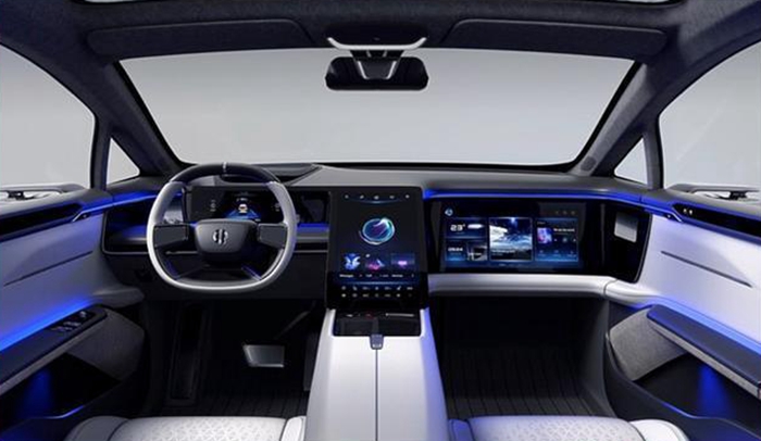 内饰方面,新车从左到右分别放置了15英寸仪表盘、16.9英寸中控屏以及20英寸副驾大屏,极为吸睛。同时,新车配备了流媒体后视镜、360环抱式摄像头、主/副驾电子外后视镜显示屏、前后门饰板触屏。此外,新车各种传感器可以监测驾乘员的体温、心率等。